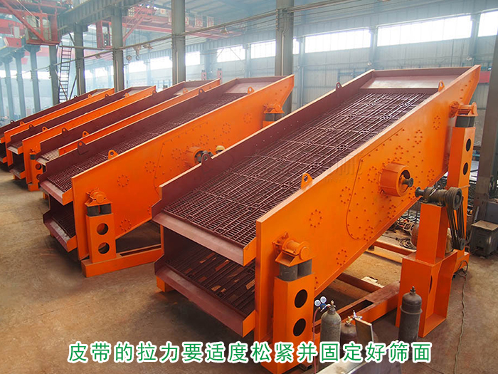 開始安裝時(shí),電動(dòng)機(jī)的水平應(yīng)矯正好,兩皮帶輪對應(yīng)槽溝的中心線應(yīng)當(dāng)重合,三角皮帶的拉力要適度松緊,然后按要求安裝并固定好篩面。