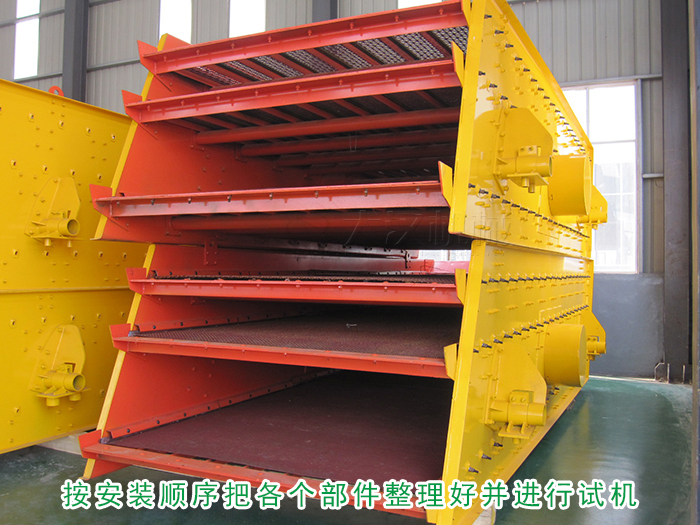 安裝開始時(shí)把基礎(chǔ)找平,接著按照支承或吊掛裝置,圓形振動(dòng)篩的安裝圖,按順序把各個(gè)部件整理好,彈簧的裝入可按標(biāo)記的試機(jī)進(jìn)行選配。