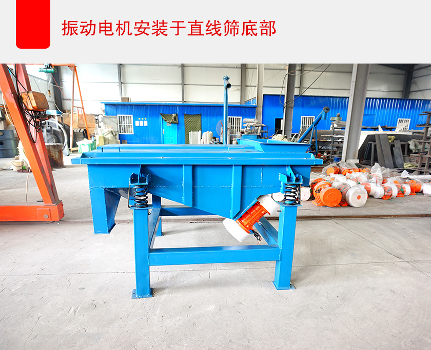 當(dāng)然,也可以通過減少直線篩的篩框等整體寬度來解決這個問題,但這樣會造成設(shè)備的有效篩分面積減少,導(dǎo)致處理量變小,影響篩分效率、生產(chǎn)進(jìn)度,所以可以選擇將振動電機安裝在設(shè)備的底部,以此來減少直線篩的整體寬度,這樣即保證了設(shè)備的有效篩分面積,不影響處理量和篩分效率,也大大減小了直線篩設(shè)備的整體寬度。