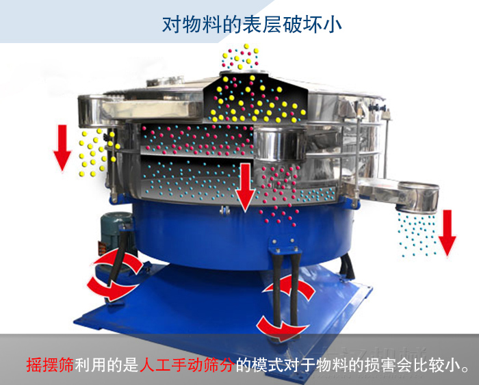 振動篩的篩分是由振動原理進行篩分的,所以會對于物料的表層造成一定的損壞,而搖擺篩利用的是人工手動篩分的模式對于物料的損害會比較小。