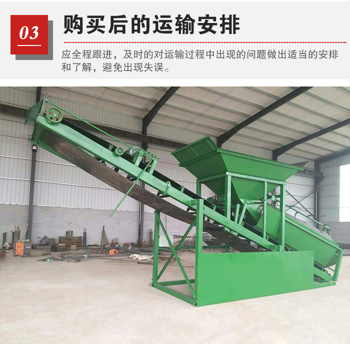 篩沙機(jī)在采購(gòu)?fù)戤吅螅瑥S家會(huì)在設(shè)備完成后進(jìn)行運(yùn)輸發(fā)貨,此時(shí),用戶應(yīng)全程跟進(jìn),及時(shí)的對(duì)運(yùn)輸過(guò)程中出現(xiàn)的問(wèn)題做出適當(dāng)?shù)陌才藕土私猓苊鈴S家出現(xiàn)失誤,出現(xiàn)小配件漏發(fā)等問(wèn)題。