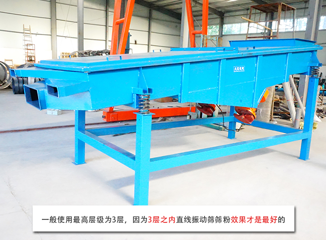 多層直線振動篩主要用于粗碎或中碎之前的預先篩分,單層直線線振動篩適合小戶型用戶,篩分產量比較低的用戶,多層直線振動篩適合對產量需求比較大的用戶,一般使用最高層級為3層,因為3層之內直線振動篩篩粉效果才是最好的,3層以上的直線振動篩離振動電機會比較遠,篩分效果就會變差