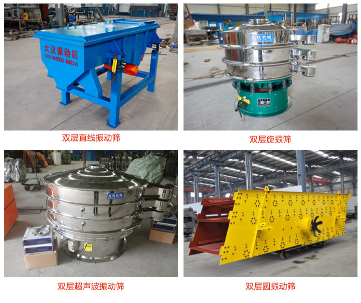 雙層振動篩有兩層篩網、三個出料口、可將一種物料分成三種不同的規格,篩分精度高達95%以上,雙層振動篩有很多型號,如雙層直線振動篩、雙層旋振篩、雙層圓振動篩、雙層超聲波振動篩等,下面小編幫助大家羅列一些這些雙層振篩的主要型號。