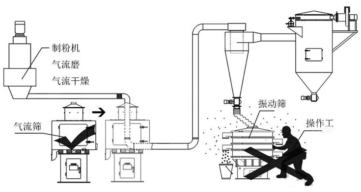 氣流篩作用于離心力并且不產(chǎn)生任何振動,因此在入口和出口處可以進行剛性連接,而一般的振動上工作并且在入口和出口處只能進行柔性連接,靈活的連接增加了泄漏的機會,空氣含塵量低于10mg/m3。