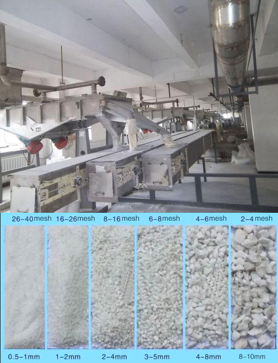 是專門用于硅砂的篩分和分級。可處理0.5mm-32mm范圍內(nèi)的石英砂顆粒或粉末,可以同時進行多層篩選。