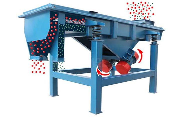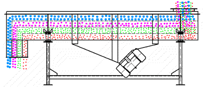 直線型振動(dòng)篩兩電機(jī)軸相對(duì)篩面有一傾角,在激振力和物料自重力的合力作用下,物料在篩面上被拋起跳躍式向前作直線運(yùn)動(dòng),從而 達(dá)到對(duì)物料進(jìn)行篩選和分級(jí)的目的。可用于流水線中實(shí)現(xiàn)自動(dòng)化作業(yè)。