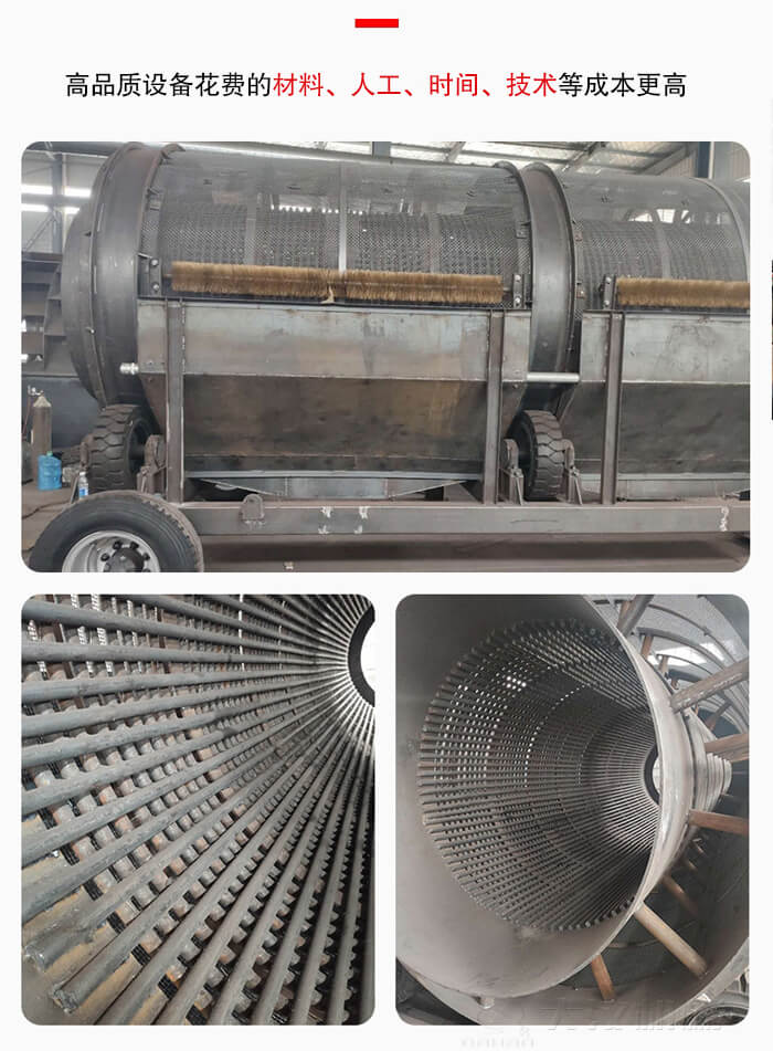 設備品質是決定移動滾筒篩價格的主要因素之一,質量越好的設備做工更精細,選材更用心,所以花費的材料、人工、時間、技術等成本更高,其市場價格則會更高,成本自然而然就更高,其價格也會更貴,但是后期使用中效果(包括、、產量等方面優勢)也會更顯著,帶給用戶的利潤價值更高。
